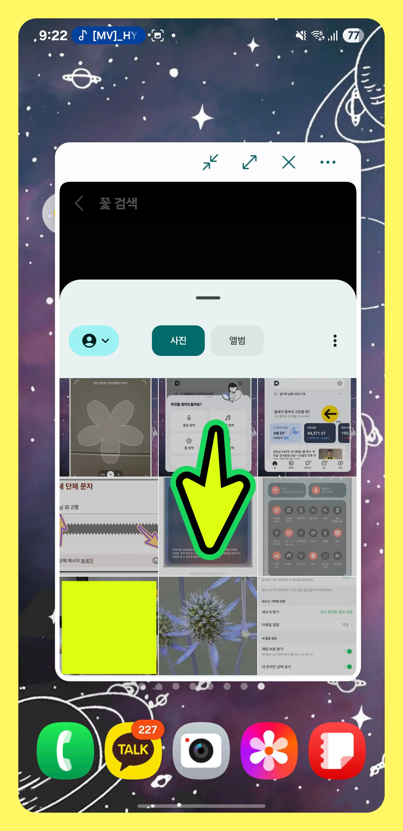 - (사진으로 찾을 시) 화면에 보이는 내 갤러리 사진 목록에서 원하는 꽃 사진을 바로 선택합니다.